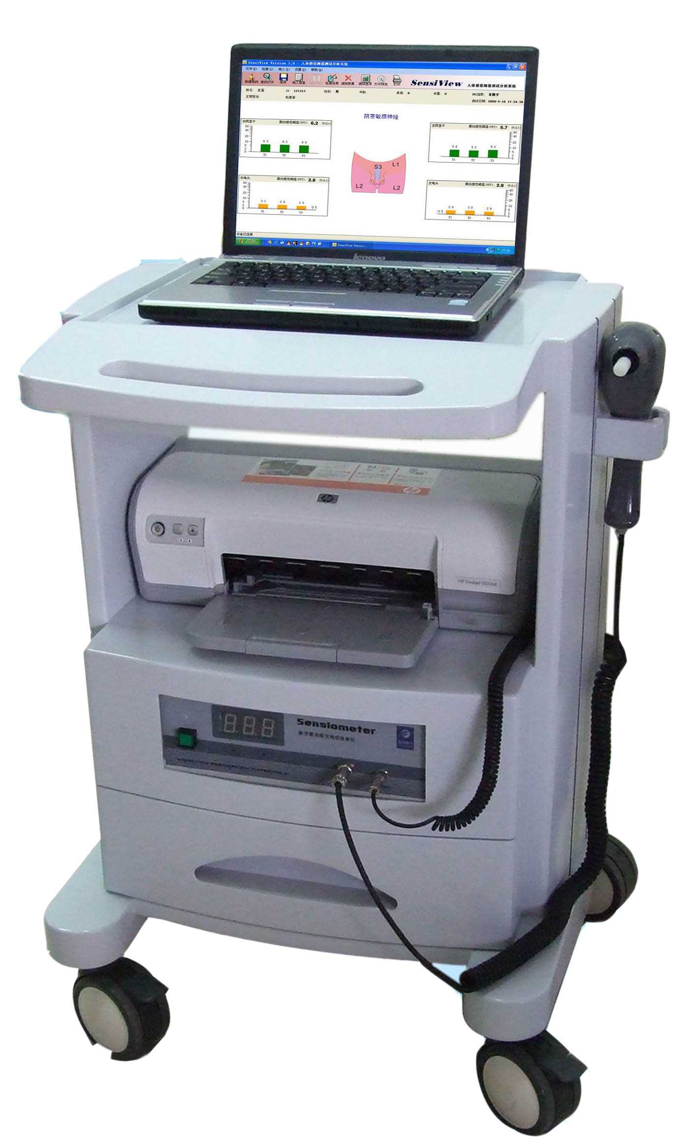 该产品采用微震动刺激探头,通过对阴茎龟头等部位的生物震动感觉阈值测量(Penile Biothesiometer),定量的评价阴茎等部位感觉神经的敏感程度,评价性相关神经的传导功能和中枢神经对性兴奋的调节性。该产品还可以结合阴茎多普勒血流检查,配合专业的评价分析软件,迅速、准确对男性功能障碍进行全面的鉴别诊断,是目前男性性功能障碍检查最为直接、有效的工具之一。