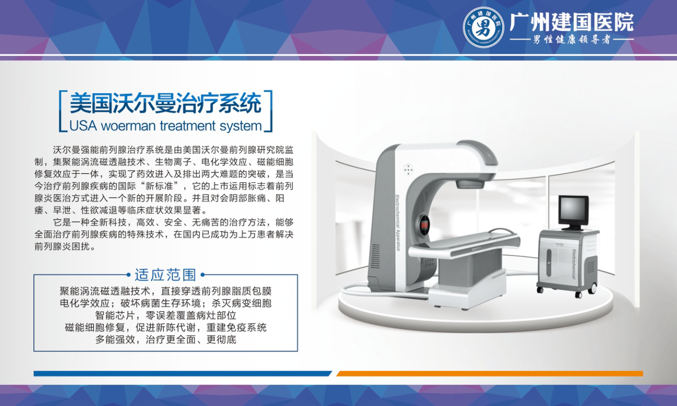 沃尔曼集合了四种全新治疗手段,包括聚能涡流磁透融技术、生物离子效应、电化学效应、磁能细胞修复效应,这几项治疗手段被业界称为“1+3极致祛炎”,可一次解决急性、慢性、细菌性、顽固性等多种前列腺炎症。