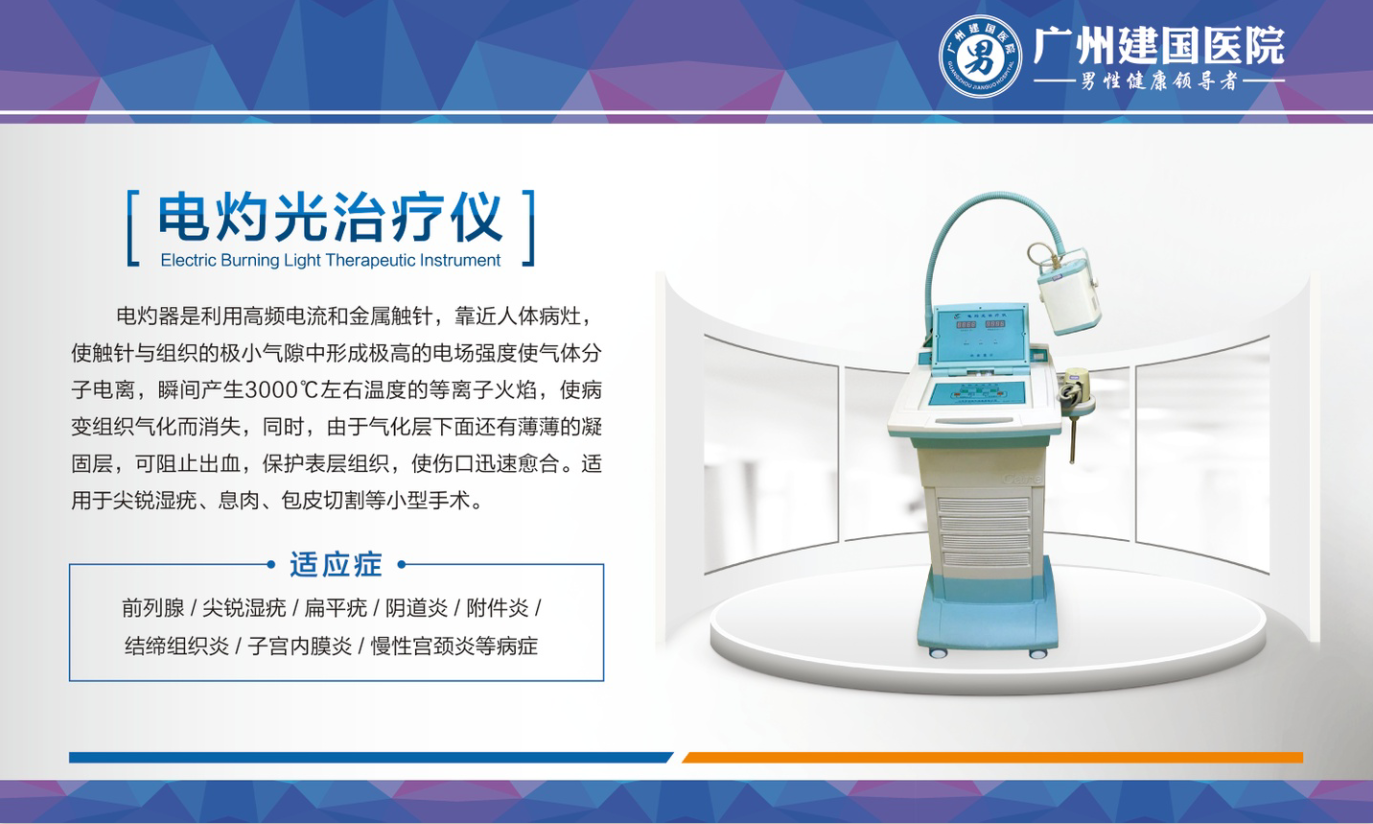 电灼器是利用高频电流和金属触针,靠近人体病灶,使触针与组织的极小气隙中形成极高的电场强度使气体分子电离,瞬间产生3000℃左右温度的等离子火焰,使病变组织气化而消失,同时,由于气化层下面还有薄薄的凝固层,可阻止出血,保护表层组织,使伤口迅速愈合。适用于尖锐湿疣、息肉、包皮切割等小型手术。